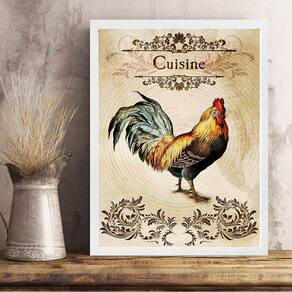 Quadro vintage para cozinha galo 45x34cm - com vidro Cor: moldura preta Informações do produto tire todas as suas dúvidas no descritivo abaixo: decoração para quarto, sala, cozinha, escritório, área gourmet e muito mais. Chega de paredes vazias medidas - cada peça tem 45x34cm a3 . Material do papel - papel fotográfico brilhante de altíssima resolução acabamento - todos os quadros são acompanhados de vidro para proteção da imagem. - moldura em madeira maciça na cor preta ou branca conforme produto escolhido e pendurador . - os quadros são embalados de forma segura com plástico bolha com camada dupla de acordo com o tamanho dos quadros. Garantia - garantia de 3 meses. Meu quadro chegou. Como posso fixá-lo Você precisa apenas de um martelo e um prego, pois os quadros já vão acompanhados de penduradores. Esta é a forma mais indicada. Como posso limpar meu quadro A limpeza é feita como um móvel comum da sua casa. Apenas um pano seco ou espanador são suficientes para tal Ean: 7893116248748