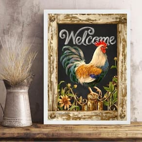Quadro vintage rústico galinha 24x18cm Cor: moldura branca Informações do produto tire todas as suas dúvidas no descritivo abaixo: decoração para quarto, sala, cozinha, escritório, área gourmet e muito mais. Chega de paredes vazias medidas - cada peça tem 24x18cm a5 . Material do papel - papel fotográfico brilhante de altíssima resolução acabamento - todos os quadros são acompanhados de uma película de acetato para proteção da imagem. - os quadros são embalados de forma segura com plástico bolha com camada dupla de acordo com o tamanho dos quadros. Garantia - garantia de 3 meses. Meu quadro chegou. Como posso fixá-lo Você precisa apenas de um martelo e um prego, pois os quadros já vão acompanhados de penduradores. Esta é a forma mais indicada. Caso prefira, você pode utilizar uma fita dupla face neste caso, sugerimos de alta qualidade para evitar que descole e seu quadro caia . Como posso limpar meu quadro A limpeza é feita como um móvel comum da sua casa. Apenas um pano seco ou espanador são suficientes para tal Ean: 7891449304094