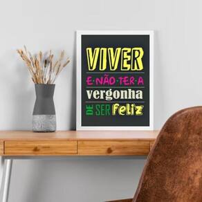 Quadro viver e não ter a vergonha de ser feliz 33x24cm Cor: moldura branca Informações do produto tire todas as suas dúvidas no descritivo abaixo: decoração para quarto, sala, cozinha, escritório, área gourmet e muito mais. Chega de paredes vazias medidas - cada peça tem 33x24cm a4 . Material do papel - papel fotográfico brilhante de altíssima resolução acabamento - todos os quadros são acompanhados de uma película de acetato para proteção da imagem. - os quadros são embalados de forma segura com plástico bolha com camada dupla de acordo com o tamanho dos quadros. Garantia - garantia de 3 meses. Meu quadro chegou. Como posso fixá-lo Você precisa apenas de um martelo e um prego, pois os quadros já vão acompanhados de penduradores. Esta é a forma mais indicada. Caso prefira, você pode utilizar uma fita dupla face neste caso, sugerimos de alta qualidade para evitar que descole e seu quadro caia . Como posso limpar meu quadro A limpeza é feita como um móvel comum da sua casa. Apenas um pano seco ou espanador são suficientes para tal