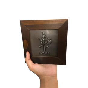 Quadro Xangô Ayra Orixá Madeira Imbuia e Metal 14,5x14,5cm