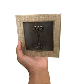 Quadro Xangô Machado Orixá Madeira Carvalho 13 x13 cm Quadro Xangô Machado Orixá Madeira Carvalho 13 x13 cm