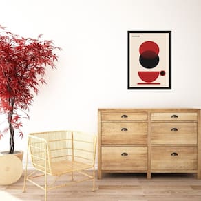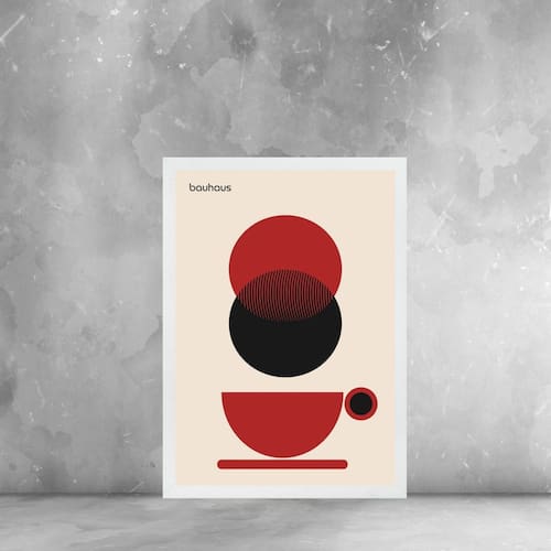 Quadro Xícara de Café Vermelho e Preto - Bauhaus 45x34cm - com vidro - Cor: Moldura branca