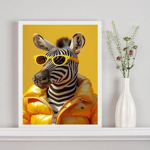 Quadro zebra fashion de óculos amarelo 45x34cm Cor: moldura branca Informações do produto tire todas as suas dúvidas no descritivo abaixo: decoração para quarto, sala, cozinha, escritório, área gourmet e muito mais. Chega de paredes vazias. Medidas - cada peça tem 45x34cm a3 . Material do papel - papel fotográfico brilhante de altíssima resolução acabamento - todos os quadros são acompanhados de uma película de acetato para proteção da imagem. - os quadros são embalados de forma segura com plástico bolha com camada dupla de acordo com o tamanho dos quadros. - de 3 meses. Meu quadro chegou. Como posso fixá-lo Você precisa apenas de um martelo e um prego, pois os quadros já vão acompanhados de penduradores. Esta é a forma mais indicada. Caso prefira, você pode utilizar uma fita dupla face neste caso, sugerimos de alta qualidade para evitar que descole e seu quadro caia . Como posso limpar meu quadro A limpeza é feita como um móvel comum da sua casa. Apenas um pano seco ou espanador são suficientes para tal Marca: Não Informado Ean: 7901039755356