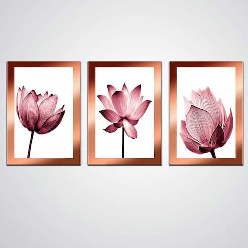 Quadros abstrato flores rosas Kit com 3 MDF Especificações Material: mdf Impressão de Alta Qualidade, não déspota a cor Madeira proveniente de reflorestamento Não acompanha moldura