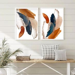 O Conjunto 2 Quadros Abstratos Arte Azul Terracota 24X18Cm é perfeito para adicionar um toque de estilo e personalidade à decoração do seu quarto, sala, cozinha, escritório, área gourmet e muito mais. Chega de paredes vazias!