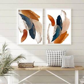 Conjunto 2 Quadros Abstratos Arte Azul Terracota 45X34Cm