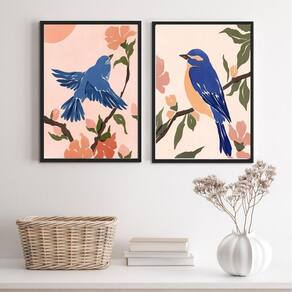 Especificações técnicas: - Título: Kit 2 Quadros Aquarelas Passarinhos Azul 33X24Cm - Material: Papel fotográfico brilhante de altíssima resolução - Moldura: Madeira preta - Medidas: 33x24cm A4 - Acompanha película de acetato para proteção da imagem - Fixação: Penduradores inclusos ou fita dupla face de alta qualidade - Limpeza: Pano seco ou espanador