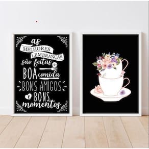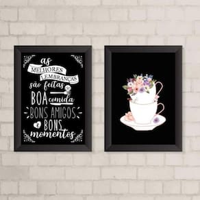 O Kit 2 Quadros Café Cozinha Bons Momentos 33X24Cm é perfeito para adicionar um toque especial à sua decoração. Com moldura de madeira preta, esses quadros são ideais para serem utilizados em quartos, salas, cozinhas, escritórios, áreas gourmet e muito mais.