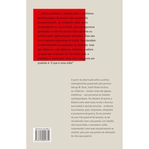 "Uma ampla interrogação transgressora e peculiar sobre como o poder enquadra nosso olhar sobre os corpos, seus significados e valores. A partir da observação sobre a política neoimperialista perpetrada pelo governo George W. Bush, Judith Butler, autora de Problemas de gênero, identifica as violências - muitas vezes não apenas simbólicas - que permeiam as relações contemporâneas. Nos seis ensaios que compõem Quadros de guerra, a filósofa norte-americana revela o discurso que modela e oprime minorias - mulheres, muçulmanos, gays, imigrantes, refugiados e prisioneiros de guerra. Se ser portador de uma vida passível de luto, se ser reconhecido como uma pessoa, um cidadão, não é para todos, é necessário, então, compreender como esse enquadramento se constrói, para que uma política de afirmação da vida seja possível. "