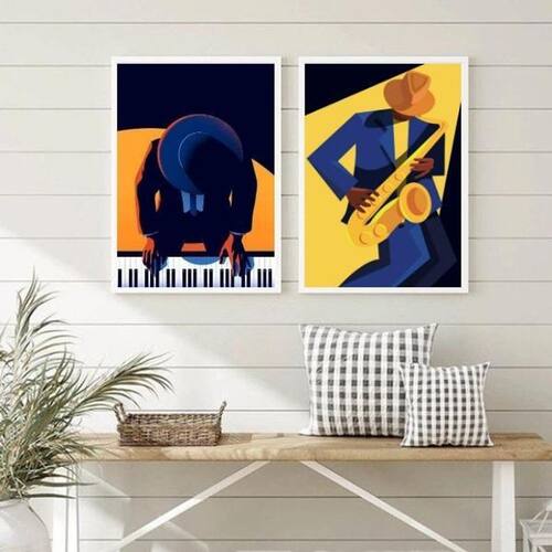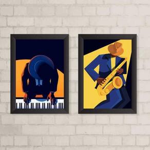 Kit 2 Quadros Decorativos Musicos Saxofone E Piano 24X18Cm