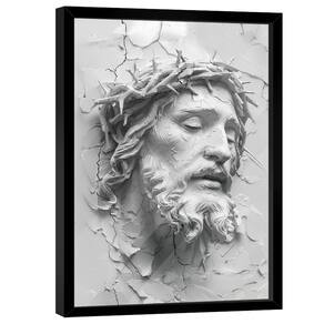 Quadros Decorativo Jesus Face 3D Moldura Preta e Vidro - 84x54cm -