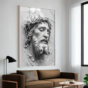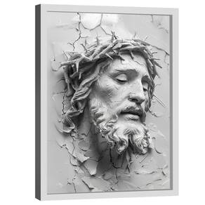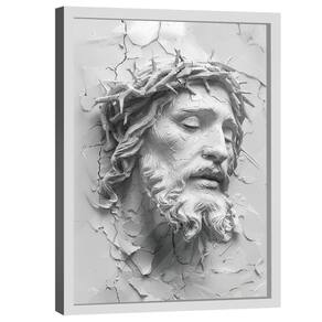 Quadros Decorativo Jesus Face 3D Moldura Branca - 180x105cm -