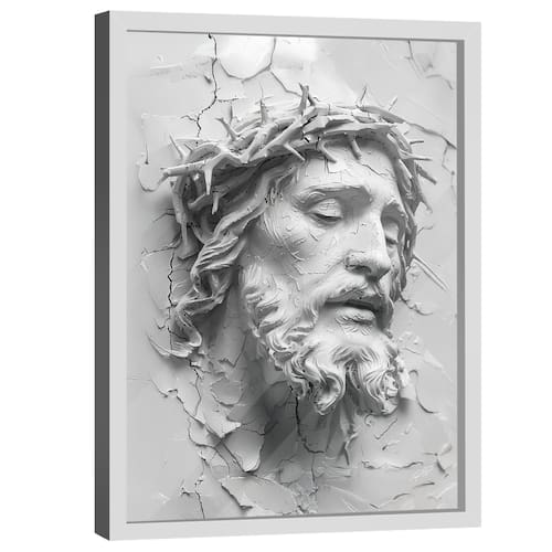 Quadros Decorativo Jesus Face 3D Moldura Branca e Vidro - 118x78cm -