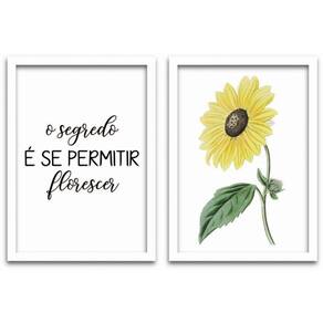Conjunto de Quadros Decorativos 2 Peças 20x30cm Girassol Moldura Branca