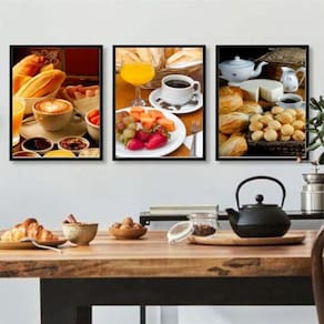 O Kit 3 Quadros Decorativos Fotografias Café Da Manhã 33X24Cm é perfeito para quem busca uma decoração criativa e charmosa para diversos ambientes, como quarto, sala, cozinha, escritório, área gourmet e muito mais.