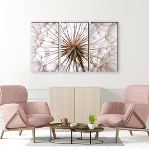 Quadros decorativos kit trio dente de leão rosa sala quarto Uma parede branca, sem vida e sem graça pode ser completamente modificada em poucos segundos. Como A gente te explica: