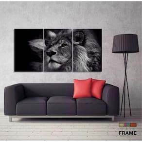 Quadros Decorativos Leão Preto E Branco 120x60 3 peças
