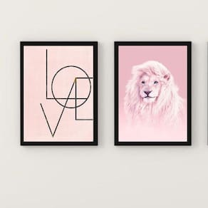 O Kit 2 Quadros Decorativos Leão Rosa Love 24X18Cm é perfeito para decorar qualquer ambiente da sua casa. Com moldura de madeira preta, esses quadros trazem um toque de elegância e sofisticação para as suas paredes.