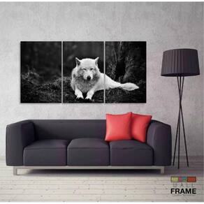 Quadros Decorativos Lobo Branco 120x60 3 peças em Tecido