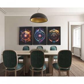 Quadros Decorativos Mandala Colorido Com Moldura Preto