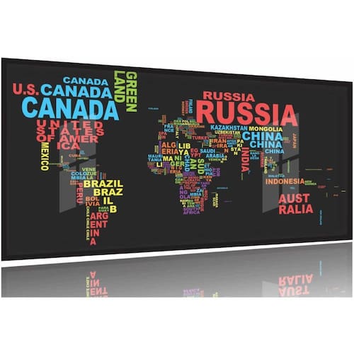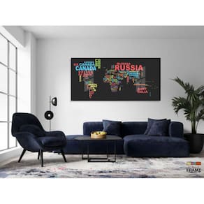 Quadros Decorativos Mapa Mundi Moderno Colorido130x60 Moldura Preta 2x2