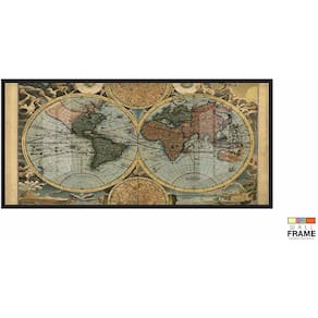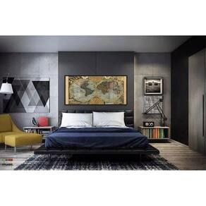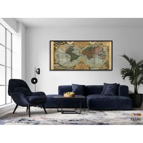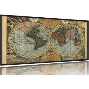 Quadros Decorativos Mapa Mundi Retrô Geografia Escola 130x60 Moldura Preta 2x2