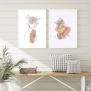 O Kit 2 Quadros Decorativos Mulheres One Line é perfeito para dar um toque especial e personalizado à decoração de diversos ambientes, como quartos, salas, cozinhas, escritórios e áreas gourmet. Chega de paredes vazias!