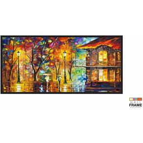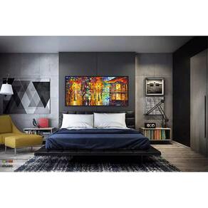 Quadros Decorativos Pintura Abstrato City Sala Quarto 130x60 Moldura Preta 2x2