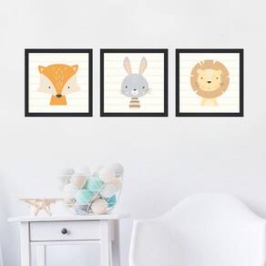 Quadrinhos Decorativos Quarto Bebê Menino Menina Bichinhos Os Quadrinhos Decorativos Quarto Bebê Menino Menina Bichinhos são a opção perfeita para você que deseja dar mais cor, arte e personalidade ao ambiente. Este kit contém 3 quadros decorativos, cada um com tamanho de 24 cm x 24 cm, em uma moldura laqueada tipo caixa alta feita em madeira. Com um espaçamento de 3 cm entre os quadros, o tamanho total da composição é de 78 cm de largura por 24 cm de altura. Os quadros decorativos são ideais para preencher sua parede com estilo e charme. Eles são impressos em alta qualidade em papel couché de 170 g, considerado um dos melhores papéis para impressão e superior ao papel adesivo vinil. A moldura é feita em madeira maciça de reflorestamento, garantindo durabilidade e resistência. Vale ressaltar que os quadros não possuem vidro. A instalação dos quadros é muito fácil e pode ser feita de duas maneiras: utilizando o preguinho que já está incluído no produto ou com fita dupla face. Escolha a opção que melhor se adequa à sua necessidade. A limpeza dos quadros é simples e prática. Recomendamos utilizar um pano seco macio, sem o uso de produtos contendo álcool ou outros componentes químicos. Os Quadrinhos Decorativos Quarto Bebê Menino Menina Bichinhos são cuidadosamente embalados com plástico bolha ou manta de espuma, garantindo a proteção do produto durante o transporte. Além disso, as embalagens são identificadas com o aviso de cuidado frágil, para que a equipe responsável pelo transporte tenha mais atenção e zelo. Além desta opção, temos diversos outros modelos de quadrinhos decorativos disponíveis. Caso queira conhecer mais opções ou tenha alguma dúvida que não foi esclarecida aqui, conosco através de mensagem. Compre com quem está há mais de 20 anos no mercado, oferecendo produtos de qualidade com preços acessíveis. Decore, inove e presenteie quem você ama com os Quadrinhos Decorativos Quarto Bebê Menino Menina Bichinhos.