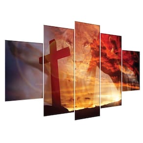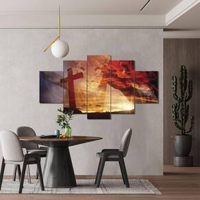 Kit Quadros Decorativos Sala Leão Judá Jesus Cruz Religioso