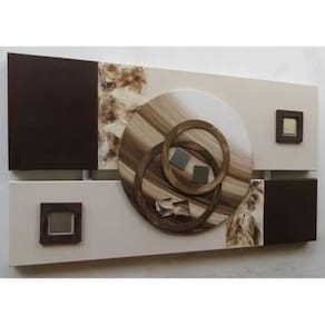 Decore sua casa e dê de presente para alguém especialDescrição : quadro abstrato decorativo moderno.Dimensões: 100x55cm, 4 cm de espessura, sobreposta por uma tela redonda.Painel tela com pintura acrílica, e apliques em mdf e alumínio.Modelo de quadro abstrato ideal para qualquer ambiente.Ficha técnica- Cor da armação: Bege- Inclui gancho: Sim- Material da armação: Madeira- É sublimado: Não- cor: tabaco e tons pastéis- É produto personalizado: Não- Espessura da armação: 4cm- Inclui armação: Sim- Quantidade de quadros: 1- Largura: 100cm- Com frases: Não- Com vidro: Não- É artesanal: Sim- Tipo de painel: Painel único- Fonte do produto: quadro Marca: Viva Quadro