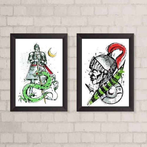 O Kit 2 Quadros Decorativos Arte São Jorge 33X24Cm possui garantia de 3 meses, garantindo a sua satisfação e segurança na compra. Adquira já o seu e deixe sua decoração ainda mais especial com essas lindas obras de arte.