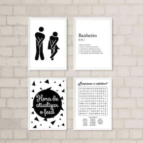 O Kit 4 Quadros Divertidos Para Banheiro 45X34Cm é uma ótima opção de decoração para o seu banheiro e outros ambientes. Adquira já o seu e deixe sua casa mais alegre e estilosa.