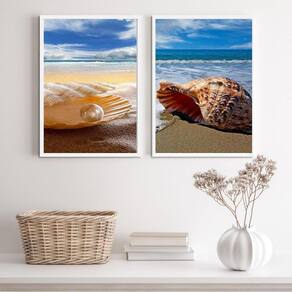 Kit 2 Quadros Fotografias Praia Mar Conchas 45X34Cm - Vidro
