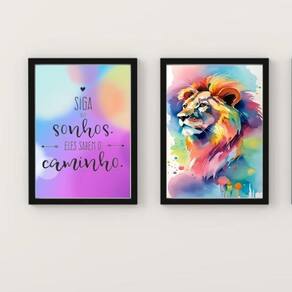 Com o Kit 2 Quadros Leão Aquarela Siga Seus Sonhos 45X34Cm, você terá a oportunidade de adicionar um toque especial à decoração do seu quarto, sala, cozinha, escritório, área gourmet e muito mais. Chega de paredes vazias! Cada peça do kit possui as medidas de 45x34cm A3 e é acompanhada de uma moldura de madeira preta, que confere elegância e sofisticação ao ambiente. Além disso, todos os quadros são produzidos em papel fotográfico brilhante de altíssima resolução, garantindo uma imagem nítida e de qualidade. Para proteger a imagem, os quadros são acompanhados de uma película de acetato, que evita danos e desgastes ao longo do tempo. E para garantir a segurança no transporte, eles são embalados com plástico bolha em camada dupla, de acordo com o tamanho dos quadros. Com de 3 meses, você pode ficar tranquilo a em relação à durabilidade e qualidade do produto. E para fixar os quadros, basta utilizar um martelo e um prego, pois eles já vêm acompanhados de penduradores. Caso prefira, também é possível utilizar uma fita dupla face de alta qualidade. A limpeza dos quadros é muito simples, podendo ser feita com um pano seco ou espanador, assim como um móvel comum da sua casa. Adquira agora mesmo o Kit 2 Quadros Leão Aquarela Siga Seus Sonhos 45X34Cm e transforme a decoração do seu ambiente com estilo e personalidade! Marca: Não Informado