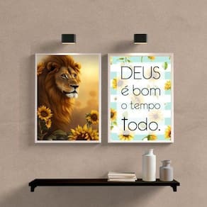 Adquira já o seu Kit 2 Quadros Leão Girassóis Deus É Bom 45X34Cm e deixe sua casa ainda mais bonita e aconchegante!