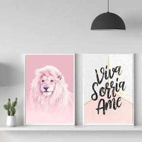 Não perca tempo e adquira agora mesmo o Kit 2 Quadros Leão Rosa Viva Sorria Ame para deixar a decoração do seu ambiente ainda mais especial! Ean: 7893939014599