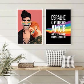 O Kit 2 Quadros Lgbt Gays Espalhe O Vírus Do Amor é perfeito para adicionar personalidade e cor aos ambientes da sua casa. Com medidas de 45x34cm A3 , essas peças são ideais para decorar quartos, salas, cozinhas, escritórios, áreas gourmet e muito mais.