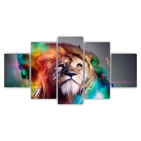 Quadros Mdf Leão De Judá Em Chamas Colorido Sala Quarto Kit 5 quadros decorativos mosaicos Material: Quadros produzido em mdf - dimensões: Tamanho total do quadro montado na parede: 115cm x 60cm - 1 peça central com 60x22cm - 2 peças intermediárias: 22x50cm - 2 peças laterais: 22x30cm. - deixar espaçamento entre as peças na hora da instalação = 1 cm -informações técnicas: O quadro não precisa de moldura, estão pronto para pendurar na parede. São feitos em adesivos fosco e impressos em alta qualidade. Aplicado em mdf com espessura de 3mm. - instalação: Não é necessário furar a parede para instalação, pois, enviamos fitas 3m com grande poder adesivo para facilitar a instalação. É necessário na hora da instalação posicionar o quadro em 1cm de largura entre eles para melhor qualidade de visualização. Limpe o local que vai ser instalado o quadro com um pano úmido, após secar o local, visualize como Vai ser o alinhamento, e retire a proteção da fita dupla face parte verde da fita e pressione No lugar desejado para a fixação. - limpeza após instalação: A limpeza pode ser realizada apenas com um pano seco macio, se desejar pode ser úmido porém sem conter álcool ou produtos químicos. -demais dúvidas estamos à disposição, basta nos chamar no campo mensagens que estamos aqui para melhor atendê-los : Boas compras Marca: Não Informado