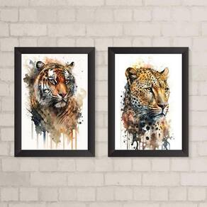 Quadros Onça e Tigre Aquarela 33x24cm - Kit 2, Branca