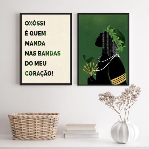 O Conjunto 2 Quadros Oxóssi É Quem Manda No Meu Coração é perfeito para decorar qualquer ambiente da sua casa. Com medidas de 24x18cm A5 , esses quadros são ideais para quartos, salas, cozinhas, escritórios, áreas gourmet e muito mais.