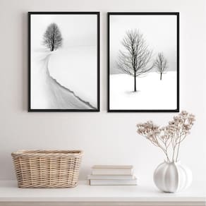 O Kit 2 Quadros Paisagens Neve Árvores 24X18Cm é perfeito para decorar diversos ambientes, como quarto, sala, cozinha, escritório, área gourmet e muito mais. Com medidas de 24x18cm A5 , cada peça possui uma moldura de madeira branca, garantindo um acabamento elegante e sofisticado.