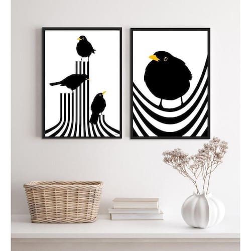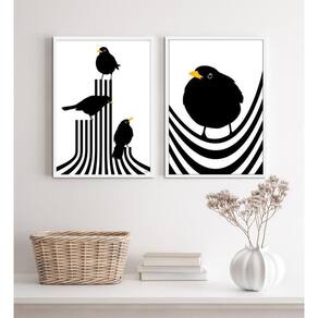 Especificações técnicas: - Kit com 2 quadros - Título: Passarinhos Modernos Listras - Medidas: 24x18cm A5 - Material do papel: Papel fotográfico brilhante de altíssima resolução - Moldura: Madeira maciça na cor preta - Acompanha vidro para proteção da imagem - Acompanha pendurador - Embalagem segura com plástico bolha de camada dupla - Garantia: 3 meses