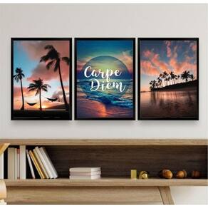 Adquira agora mesmo o Kit 3 Quadros Praia Por do Sol Carpe Diem e transforme a decoração da sua casa com muito estilo e bom gosto. Ean: 7894586822100