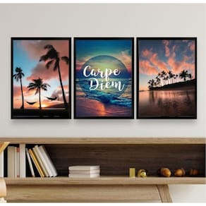 O Kit 3 Quadros Praia Por Do Sol Carpe Diem 33X24Cm é perfeito para quem busca uma decoração única e cheia de estilo. Com esse kit, você poderá transformar qualquer ambiente, seja ele o quarto, sala, cozinha, escritório, área gourmet e muito mais. Chega de paredes vazias, com esses quadros você vai deixar sua casa ainda mais bonita e aconchegante.
