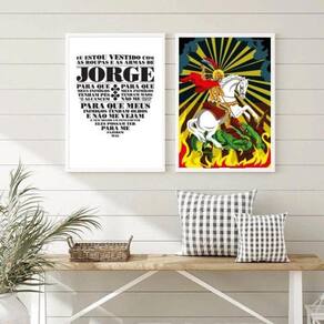 Não perca a oportunidade de decorar sua casa com muito estilo e personalidade. Adquira agora mesmo o Kit 2 Quadros São Jorge Guerreiro Oração 24x18cm - Com Vidro! Ean: 7896264719979