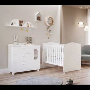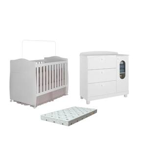 Quarto Bebe Berço e Cômoda Fofura Dorabelly com Colchão - Branco