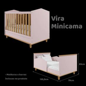 Com cabeceiras em forma de casinha, esse berço remete ao lúdico e deixará o quartinho dos pequenos ainda mais lindo. Os pés torneados são de madeira e proporcionam ainda mais charme ao produto. Fabricado com matéria-prima 100% MDF, um material ecologicamente correto e de ótima durabilidade e resistência. É um produto sinônimo de SEGURANÇA, pois é fabricado conforme as normas exigidas pela ABNT e certificado pelo INMETRO (Certificaçao Compulsória de segurança INMETRO). A base do produto é inteiriça, o que proporciona maior resistência e estabilidade. O estrado é fabricado com barrotes de madeira e base de MDF 6mm. As ferragens para sua fixação ficam ocultas e assim a cabeceira não fica cheia de furos e parafusos aparentes. Possui 2 regulagens de altura (uma mais alta para quando o bebê ainda é bem novinho e  outra mais baixa para quando o bebê já se movimenta e consegue ficar sentado). Atenção para a altura do colchão que não pode passar de 12cm. As 2 grades laterais são fixas e as réguas superior e inferior são fabricadas com MDF de 2,5cm o que proporciona ainda mais segurança. Esse berço pode se transformar em MINICAMA. Assim quando eles já forem maiores terão uma caminha linda e aconchegante para as noites de sono e você não precisará trocar seu móvel por um bom tempo. Os pés podem ser removidos e assim você terá uma caminha em estilo montessoriano. As bordas são todas arredondadas e recebem pintura em lacca com tinta atóxica e as peças retas recebem pintura UV também com tinta e verniz atóxicos.