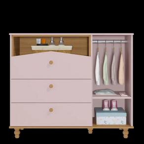 Seguindo o estilo lúdico, essa cômoda é perfeita para quem precisa de bastante espaço para organizar o enxoval dos pequenos.Possui nicho superior para organizar objetos de uso diário e 03 gavetas grandes com corrediças telescópicas que proporcionam deslizamento suave, maior abertura e melhor acesso às roupas. Possui também 01 porta de abrir com prateleira interna e 01 cabideiro para você montar de acordo com sua necessidade. Os puxadores e pés são torneados em madeira maciça e conferem um charme especial ao produto.O tampo possui bordas arredondadas que recebem pintura em laca com tinta atóxica e as peças retas recebem pintura UV também com tinta e verniz atóxicos.Fabricada com matéria-prima 100% MDF, um material ecologicamente correto e de ótima durabilidade e resistência.