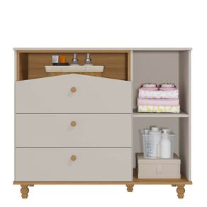 Seguindo o estilo lúdico, essa cômoda é perfeita para quem precisa de bastante espaço para organizar o enxoval dos pequenos.Possui nicho superior para organizar objetos de uso diário e 03 gavetas grandes com corrediças telescópicas que proporcionam deslizamento suave, maior abertura e melhor acesso às roupas. Possui também 01 porta de abrir com prateleira interna e 01 cabideiro para você montar de acordo com sua necessidade. Os puxadores e pés são torneados em madeira maciça e conferem um charme especial ao produto.O tampo possui bordas arredondadas que recebem pintura em laca com tinta atóxica e as peças retas recebem pintura UV também com tinta e verniz atóxicos.Fabricada com matéria-prima 100% MDF, um material ecologicamente correto e de ótima durabilidade e resistência.
